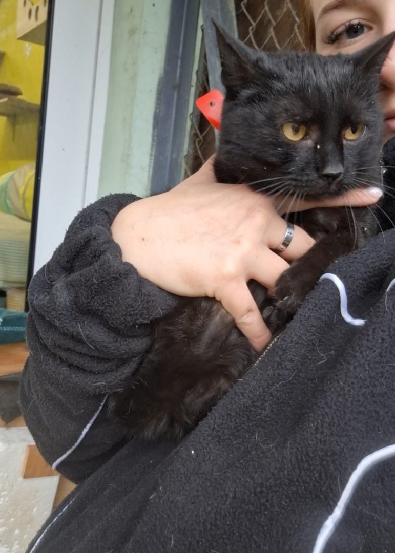 Selinka to kochana, młodziutka koteczka. Jest bardzo spokojna, większość czasu spędza na spaniu. Bardzo lubi trzymanie na rączkach. Dogaduję się z innymi kotkami. W pierwszym kontakcie z obcym człowiekiem jest lękliwa.