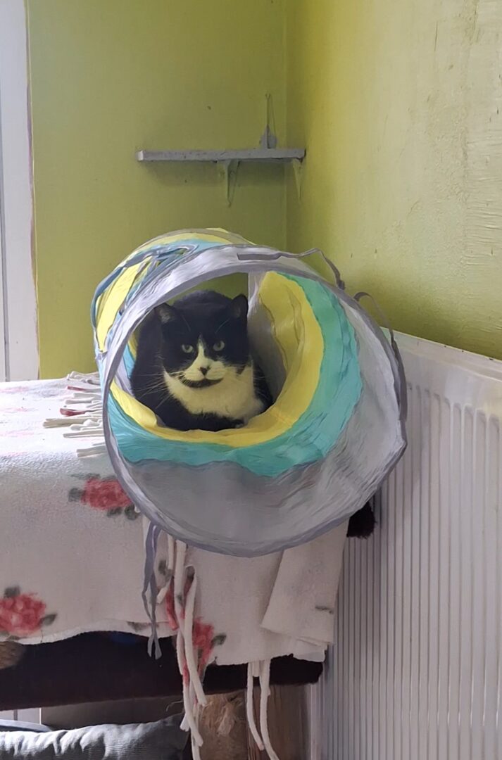 Ten kotek jest niezwykle niezależny i autonomiczny. Wydaje się, że posiada swoje własne cele i plany, których nikt nie jest w stanie poznać. Przebywa w cieniu, obserwując otoczenie ze zdystansowanym spokojem. Niezależnie od tego, czy jest to tajemnicza osobowość czy po prostu kwestia jego naturalnego instynktu, ten kot unika bliskiego kontaktu z człowiekiem. Do schroniska trafił w wrześniu 2019r.